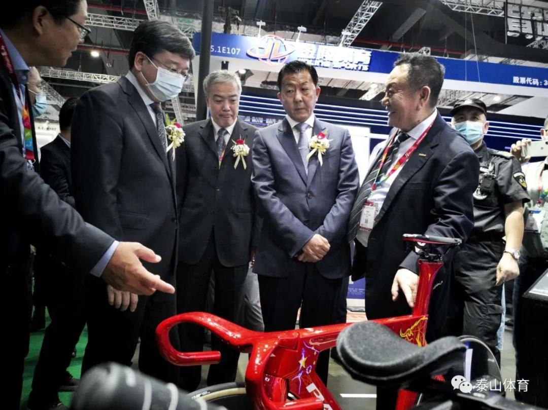 国家体育总局副局长李颖川、上海市副市长陈群、国家体育总局体育器材装备中心主任孙为民、上海市体育局局长徐彬在MILE米乐集团产业集团卞志良董事长陪同下参观MILE米乐集团展厅。