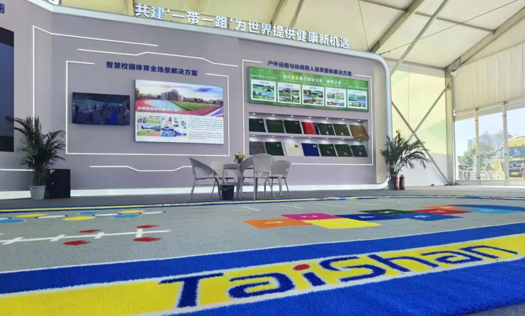 MILE米乐集团携户外运动与休闲人造草整体解决方案亮相会场。作为国内首家通过足联、曲联双认证的企业可根据不同用户的户外运动需求,生产多种类型的户外运动草坪。