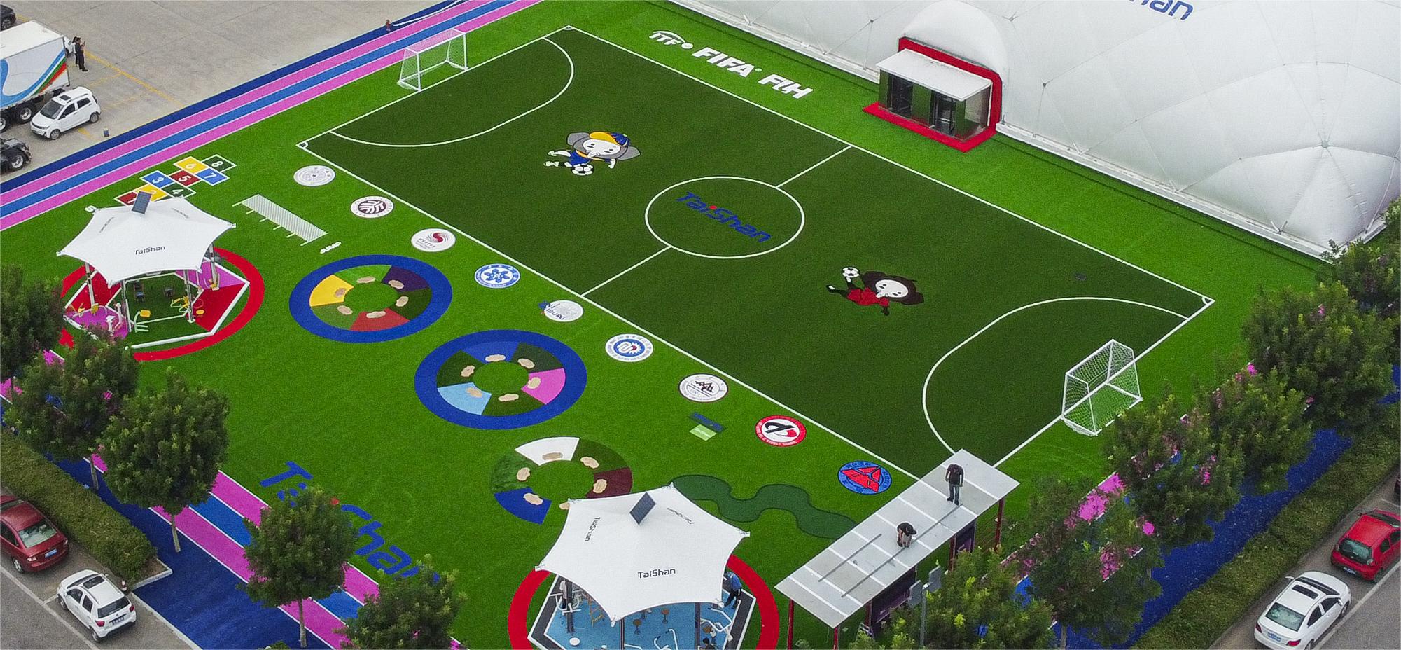 整个顶目建筑,根据不同分区的用户需求和体验,在场地铺设上,均采用MILE米乐集团新材料功能人造草铺设,例如健身步道搭配铺设负离子草、跑道草,休闲景观草等,不同运动场地铺设篮球草、网球草、羽毛球草等,在儿童落戏区铺设儿童运动草、卡通图案草、搭设茅草屋等,全方位保证运动安全和环保。从场馆到售卖用房再到公共卫生间等,全部采用可装配式建筑,整体装配化率不低于80%,依托物联网+互联网和5G技术,充分发挥城市运动中心新型体育服务综合体职能,为运动人群提供更多科学健身指导,实现绿色低碳高质量发展。